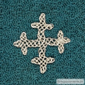 Reproduction of P16c from Birka grave 524. The original is made from double gold wire, size approx. 22mm x 23mm and 21mm x 21mm. Found together with the small and the threefold cross knot in the chest area of the grave.