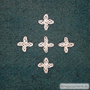 Zierknoten in Form eines gleicharmigen Kreuzes aus doppeltem Draht. Größe ca. 9mm x 9mm.